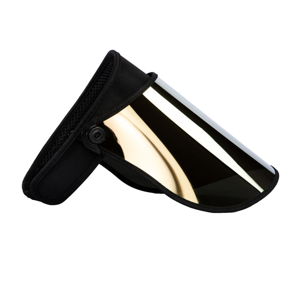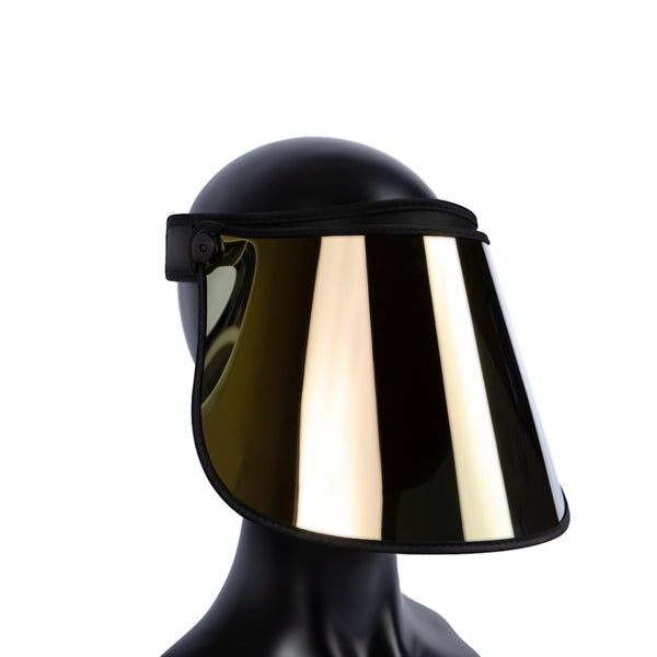 The Full Lux Sunshield is perfect for any outdoor activity when you need extra protection. The transparent, adjustable lens can be worn up like a visor or down to provide protection across your entire face. Heat resistant lens means you can keep your cool even during the hottest days. Plastic champagne / rose gold soft lens set on black headband. Unisex and one size.