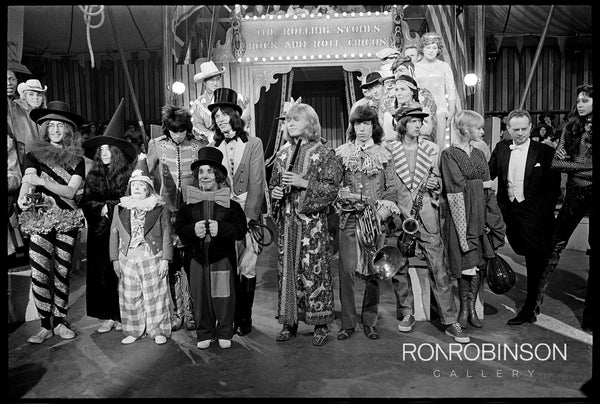 From Alec’s book LONDON ROCK: The Unseen Archive: "Rock and Roll Circus was dreamed up by Mick Jagger, who was searching for an original way to stage a rock concert. He approached director Michael Lindsay-Hogg, who had worked with the Stones on a couple of song promos, early music videos if you will. This time Jagger wanted a full-length TV show that would be broadcast by the BBC. A soundstage was booked in Wembley, northwest London, close to England’s biggest sports stadium. Jagger’s contacts ensured a stunning lineup including the Who, Jethro Tull, Taj Mahal, Marianne Faithfull, and a band called the Dirty Mac, with John Lennon on lead vocals and guitar, Eric Clapton on lead guitar, Keith Richards on bass, and Mitch Mitchell of the Jimi Hendrix Experience on drums, plus various clowns and circus artistes. What could possibly go wrong? The answer is, as it turned out, just about everything. After so much time and effort, the TV show didn’t see the light of day for nearly thirty years. Legend has it the Stones felt they’d been blown off the stage by the Who, though I don’t remember it that way.”